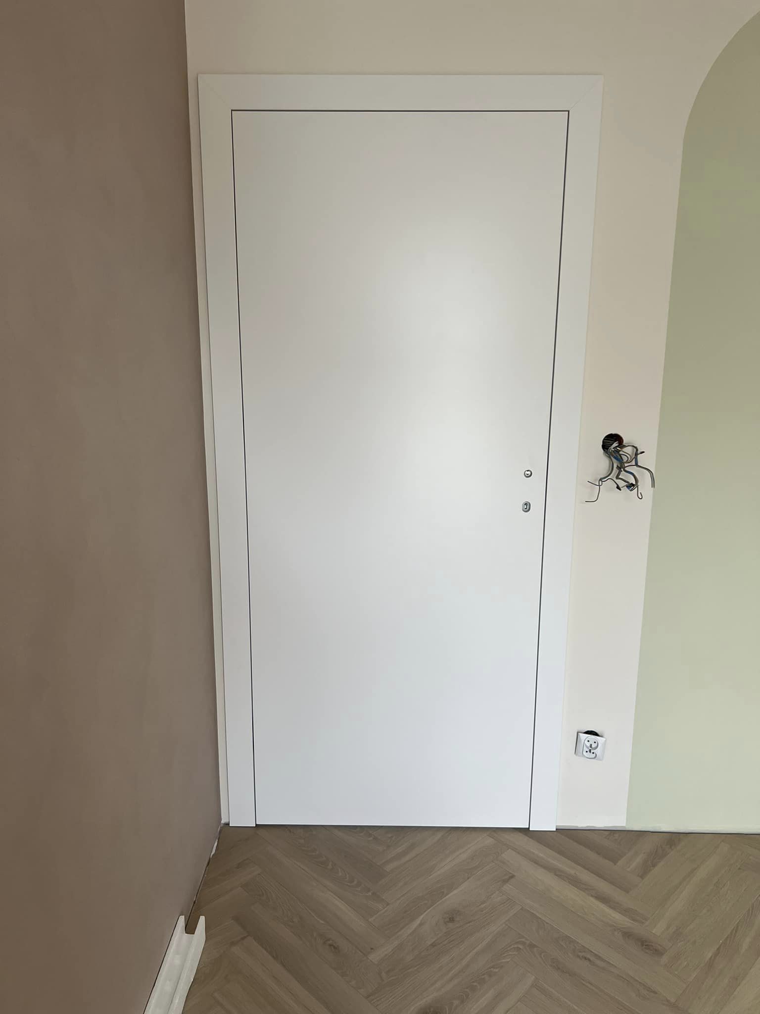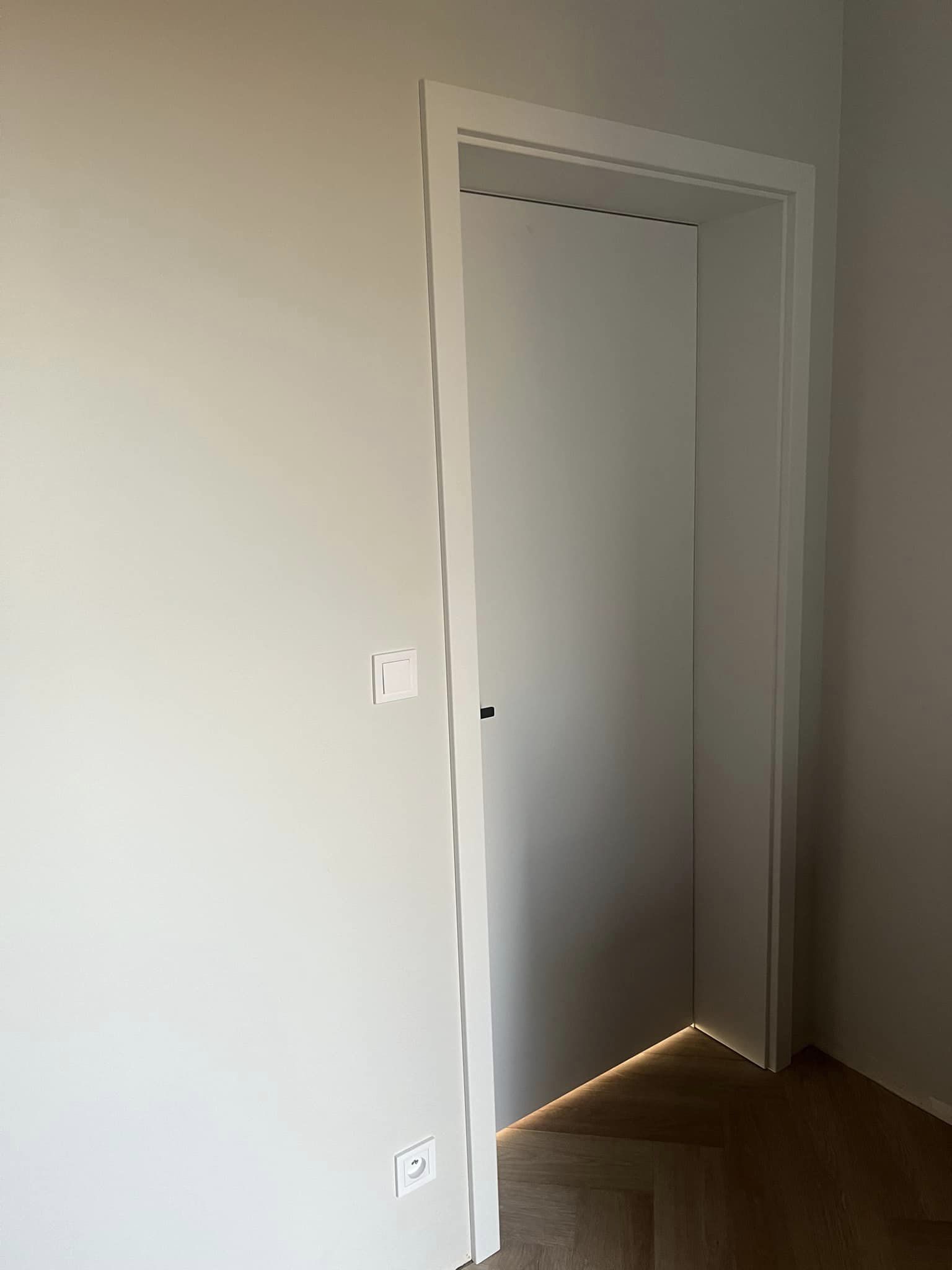 - Montaż drzwi wewnętrznych ukrytych model: Harmony z systemem flexi, producent Pol-Skone z powłoką Uni Mat