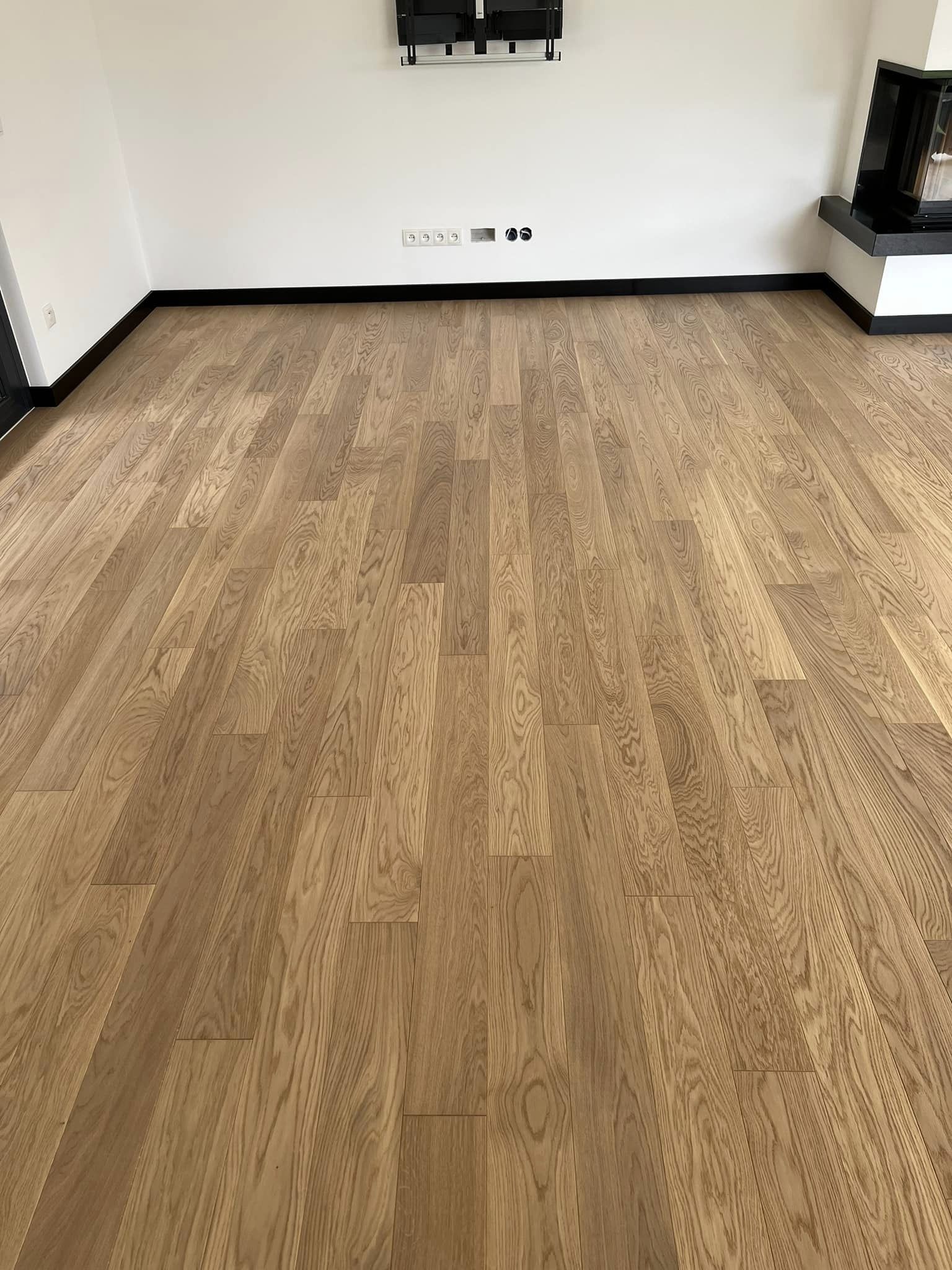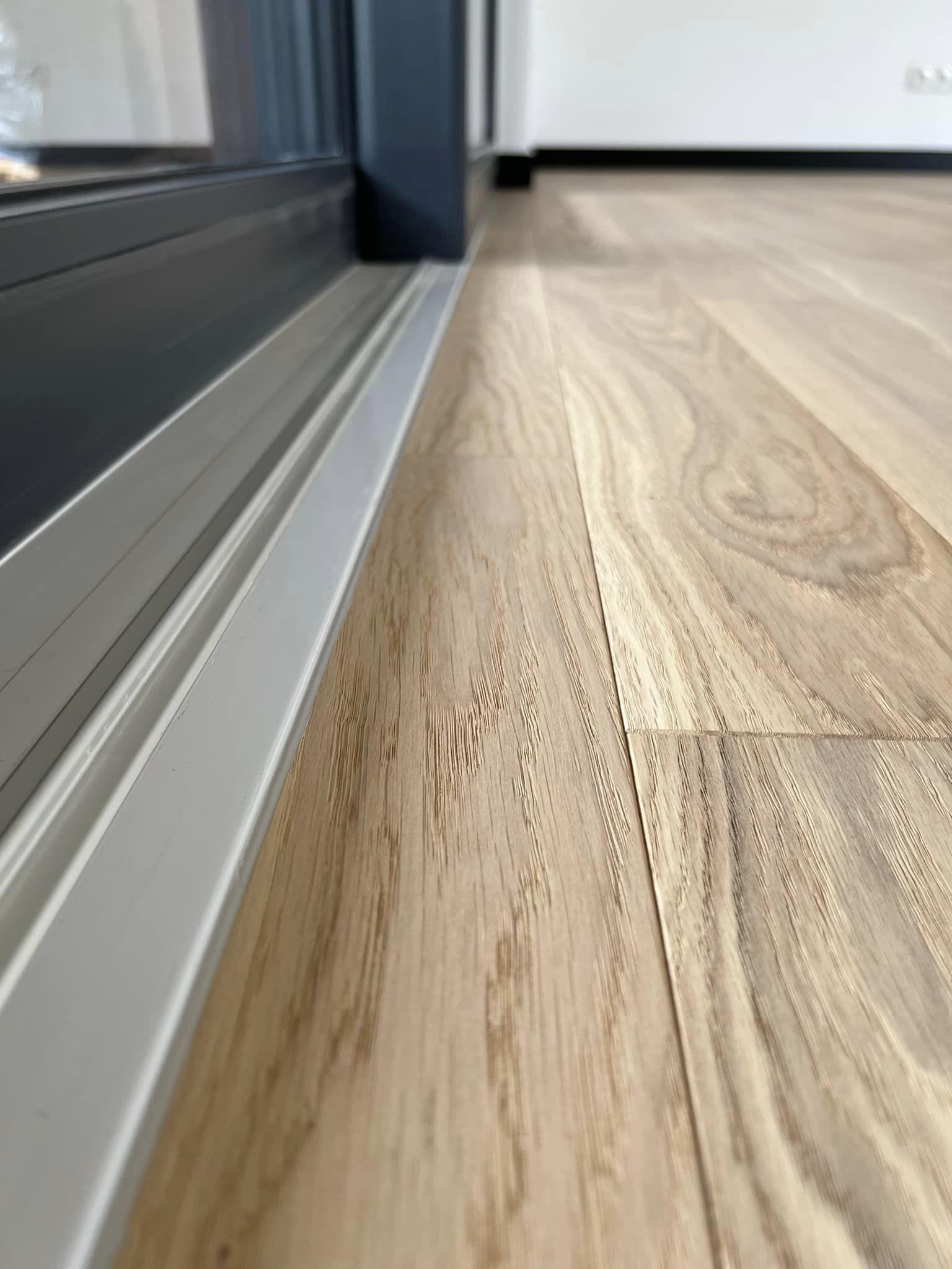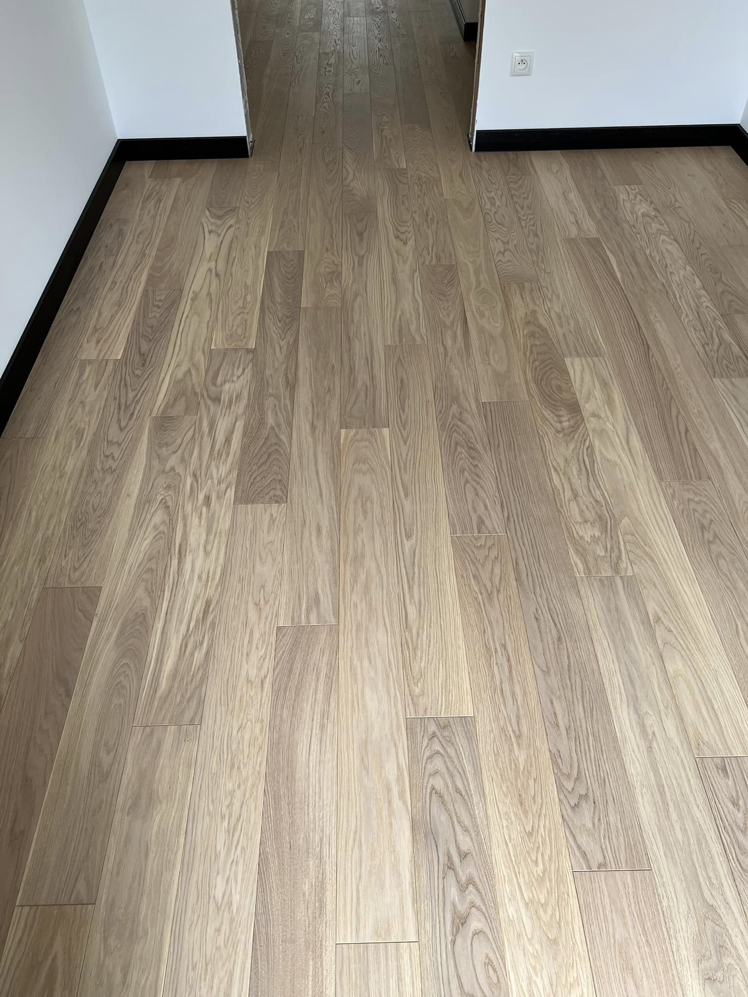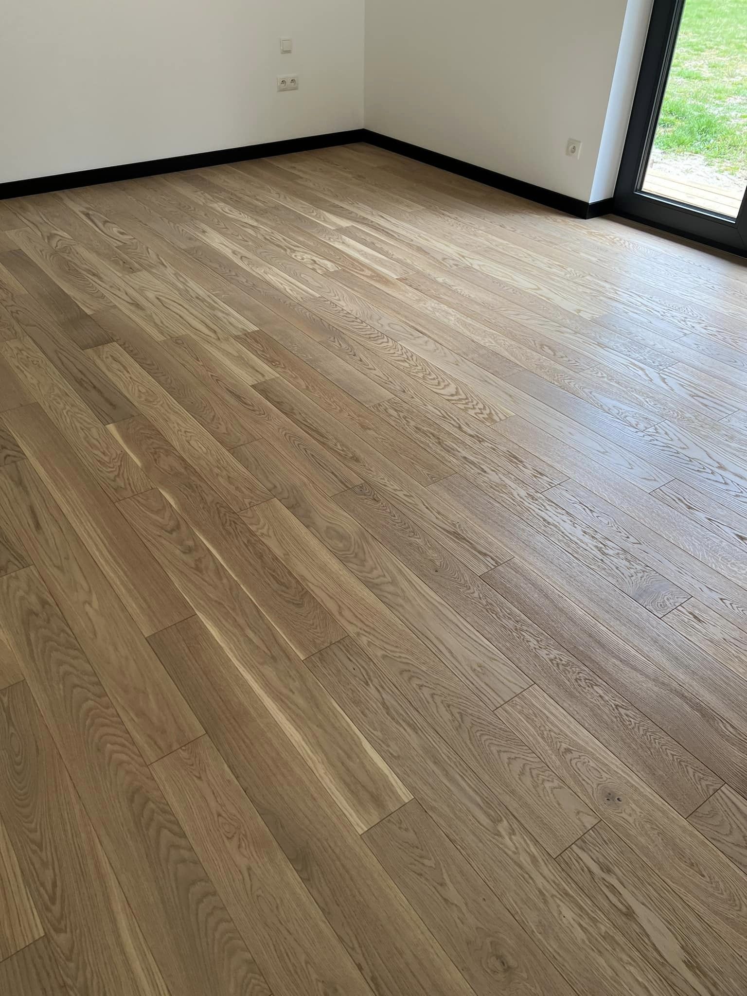 Montaż deski dwuwarstwowej dąb zamontowana na wodne ogrzewanie podłogowe, fazowana czterostronnie oraz szczotkowana. Do całości listwa rdzeniowa Cubu Flex. Od odpowiedniego przygotowania podłoża po kompleksowy montaż. Sprzedaż, montaż, doradztwo.