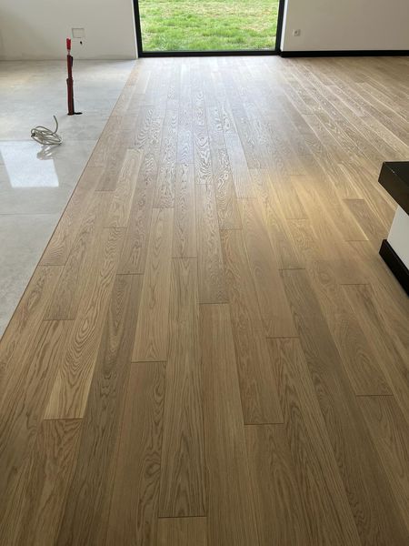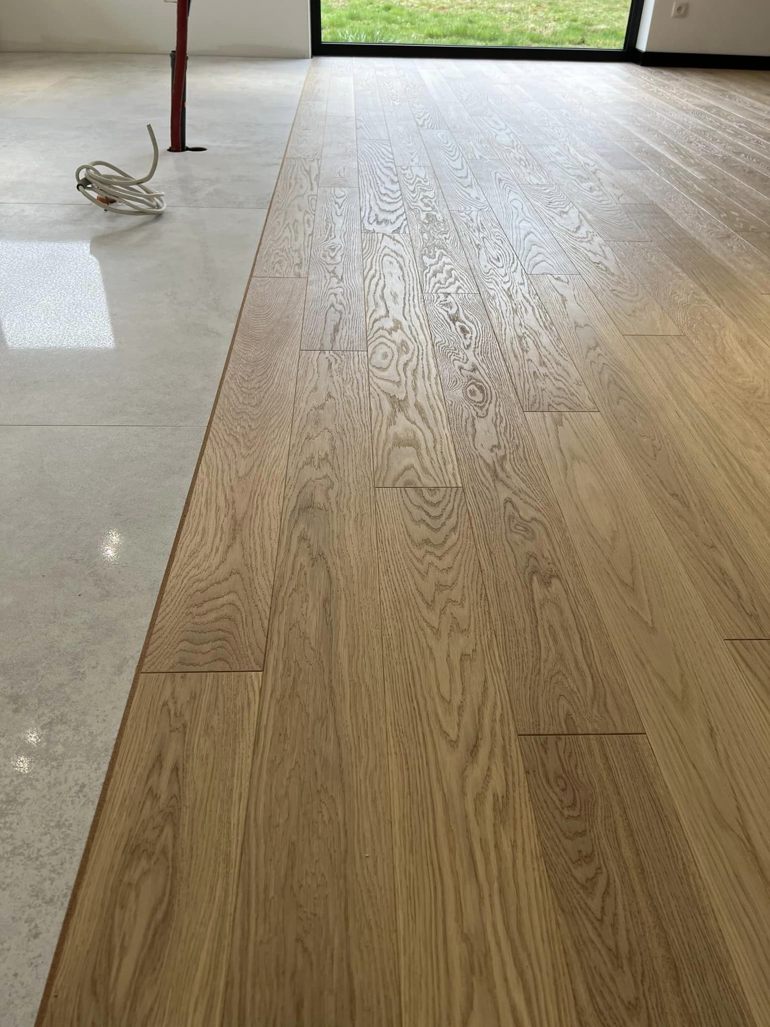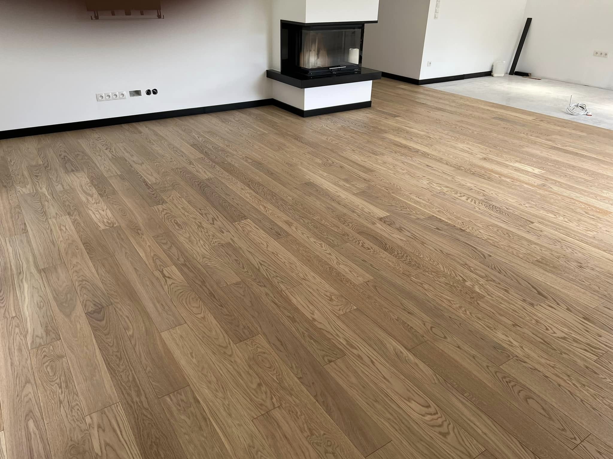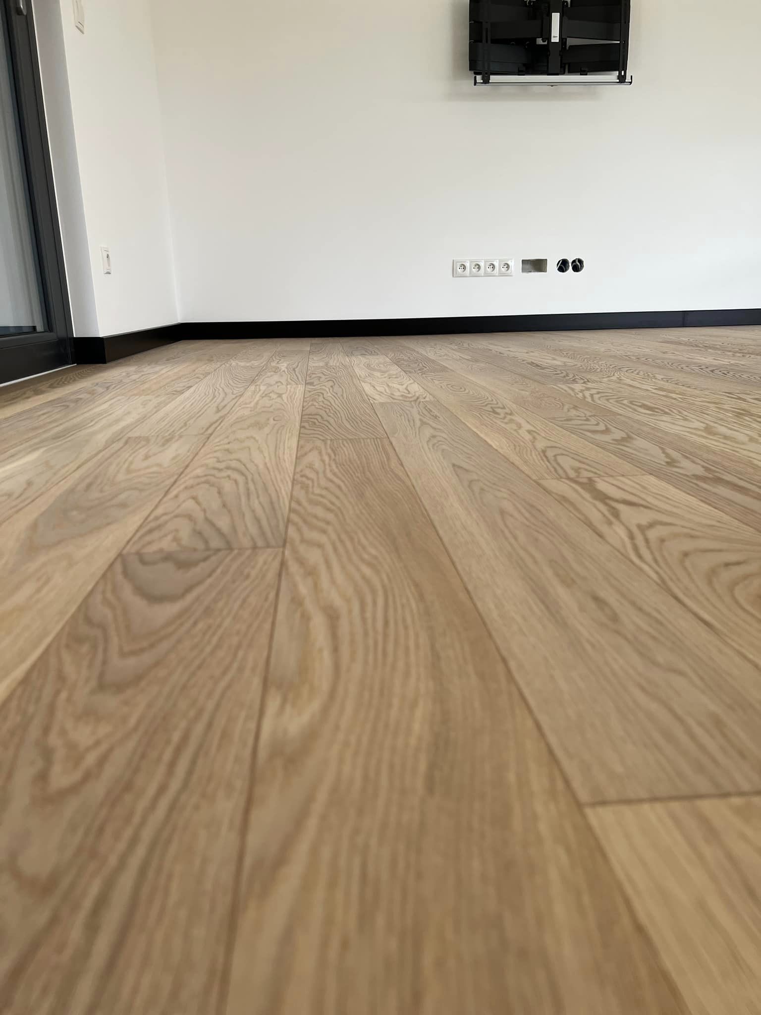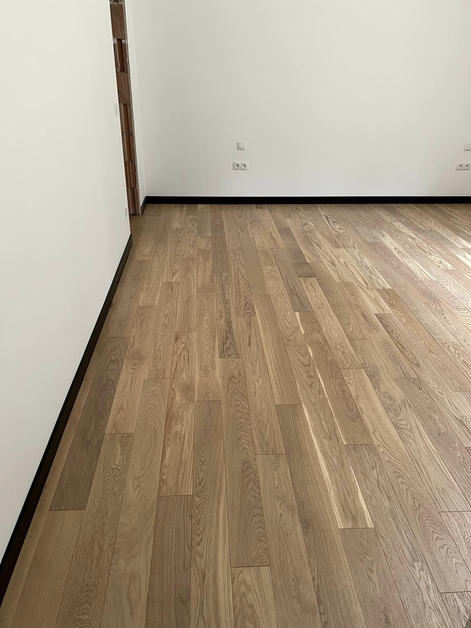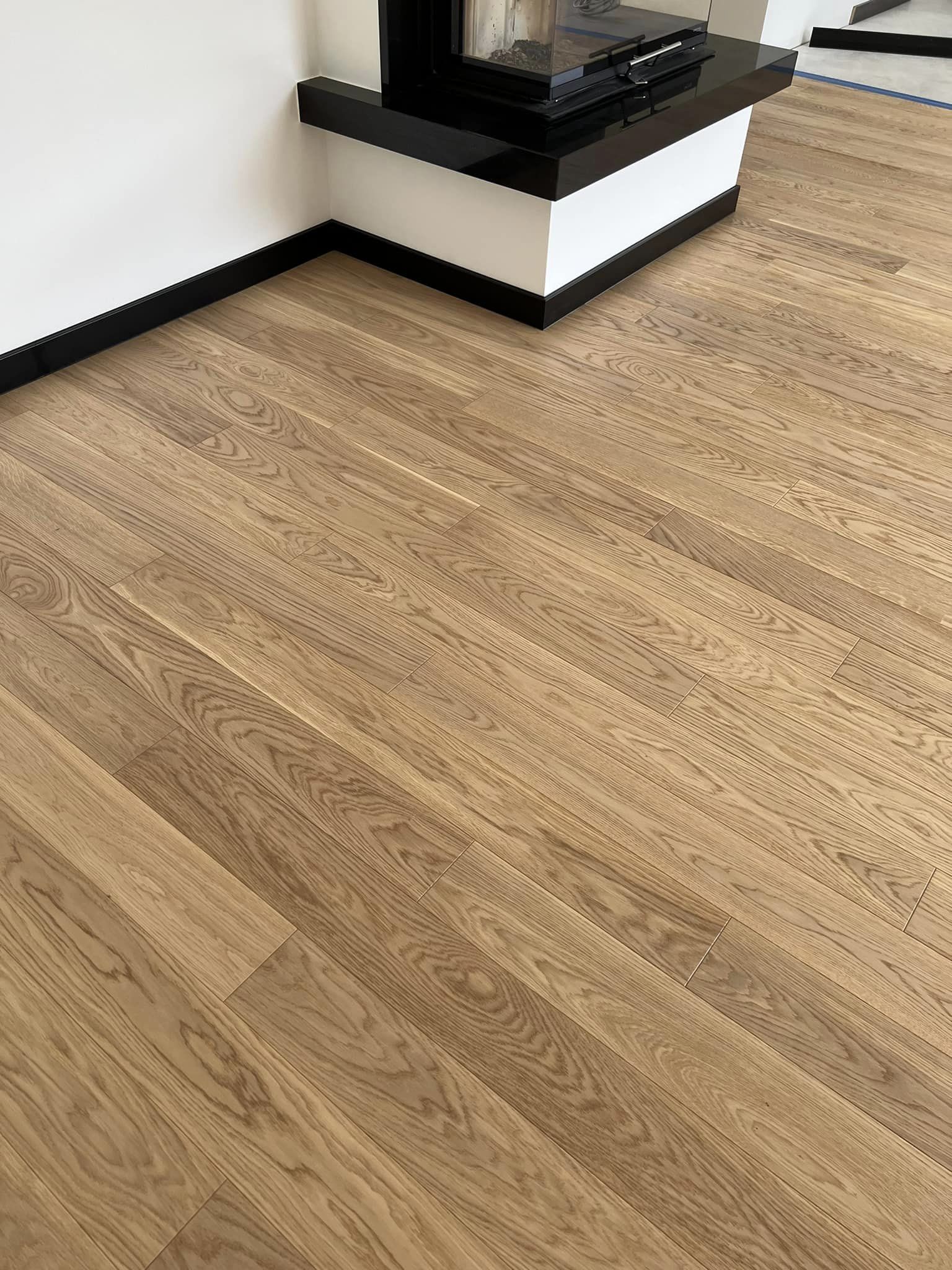 Montaż deski dwuwarstwowej dąb zamontowana na wodne ogrzewanie podłogowe, fazowana czterostronnie oraz szczotkowana. Do całości listwa rdzeniowa Cubu Flex. Od odpowiedniego przygotowania podłoża po kompleksowy montaż. Sprzedaż, montaż, doradztwo.